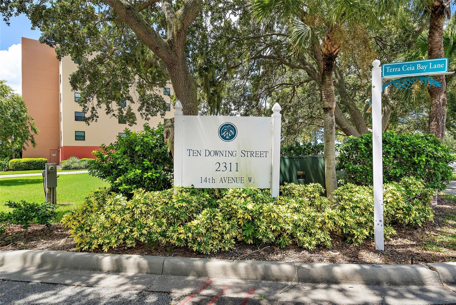With stunning views, fantastic amenities and a superior location this 2bedroom/ 2bathroom condo in Ten Downing Street won't last long. The breathtaking views of the Terra Ceia golf course, Serene lake and Tampa Bay, are yours to enjoy daily. This meticulously maintained 2-bedroom, 2-bathroom condo spans 1,219 square feet of comfortable living space. The eating space in the kitchen provides a cozy spot for casual meals. Prepare to be captivated by the stunning views towards Terra Ceia Bay from the primary bedroom. This spacious retreat boasts a large walk-in closet, ensuring ample storage for your belongings. Take a step out to your private balcony and enjoy the view! Ten Downing is centrally located to all the amazing, Top Rated Gulf Beaches. If you are not headed to the beach, you can enjoy the private pool, exclusively for Ten Downing residents! Residents have an additional perk, having access to the nearby Country Club and their amenities. Golf membership is separate but available to all residents. There is one deeded parking space in the covered garage. Conveniently located, Ten Downing Street offers easy access to both Sarasota and Tampa, ensuring you'll never be far from vibrant city life, entertainment, and cultural attractions.
